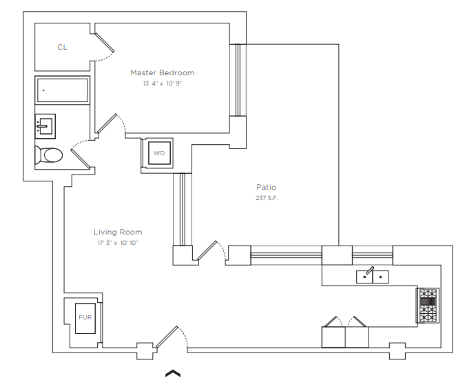 This 868 SF, 1 BD/1 BTH condominium with 237-foot outdoor patio offers a kitchen with high-end stainless steel appliances and washer and dryer in-unit.